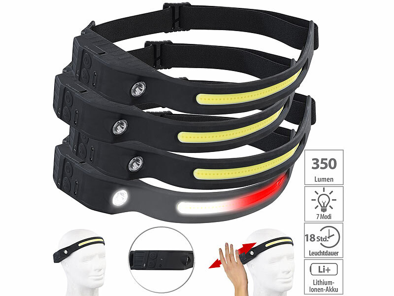 4 Stirnlampen jeweils inklusive USB-Ladekabel (USB-A auf USB-C) und deutscher Anleitung - LED-Stirnlampe aufladbar - Außerdem relevant oder passend zu: Kfz, Band, Farbe, Angel, Angeln, Notfall, Fahrrad, Streifen, Nachtsicht, Taschenlampe, Arbeitsleuchte, Lampe mit Bewegungsmelder