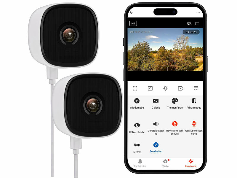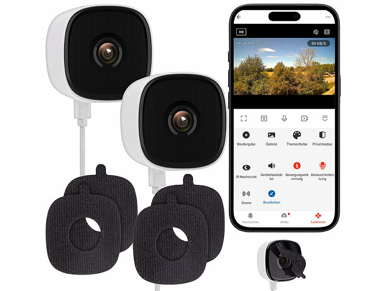 7links telecamera per terrario: Set di 2 telecamere IP per finestre WLAN 2K, 3 MP, app, visione notturna a colori, USB